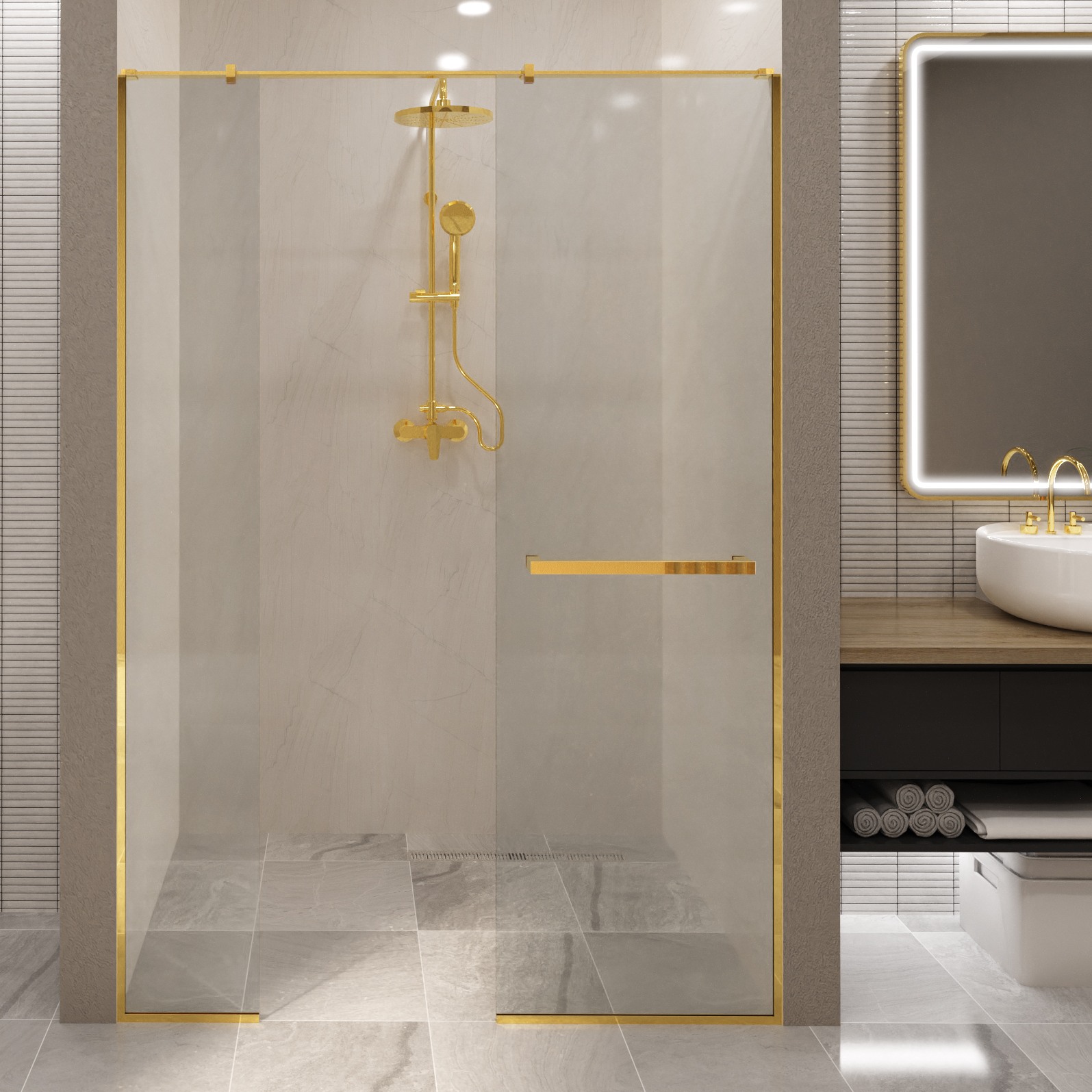 LEO-80X200V-ANincs raktáronLEO zuhany válaszfal – 80X200 cm – arany